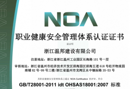 浙江温邦建设有限公司荣获职业健康安全管理体系认证证书